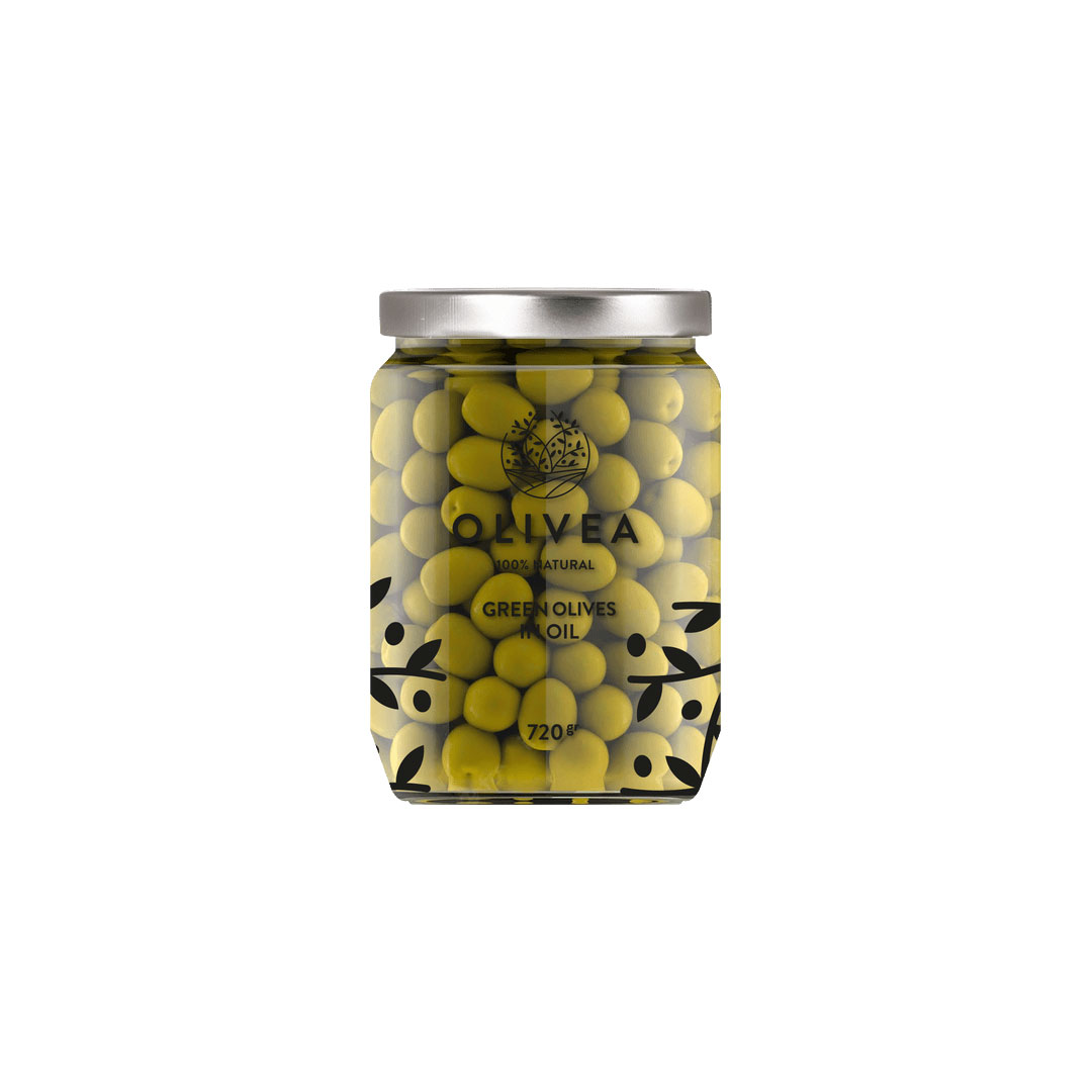 Green Olives in Oil: a perfect blend of tenderness and aroma for true connoisseurs. Immerse yourself in the exquisite taste world with OLIVEA.